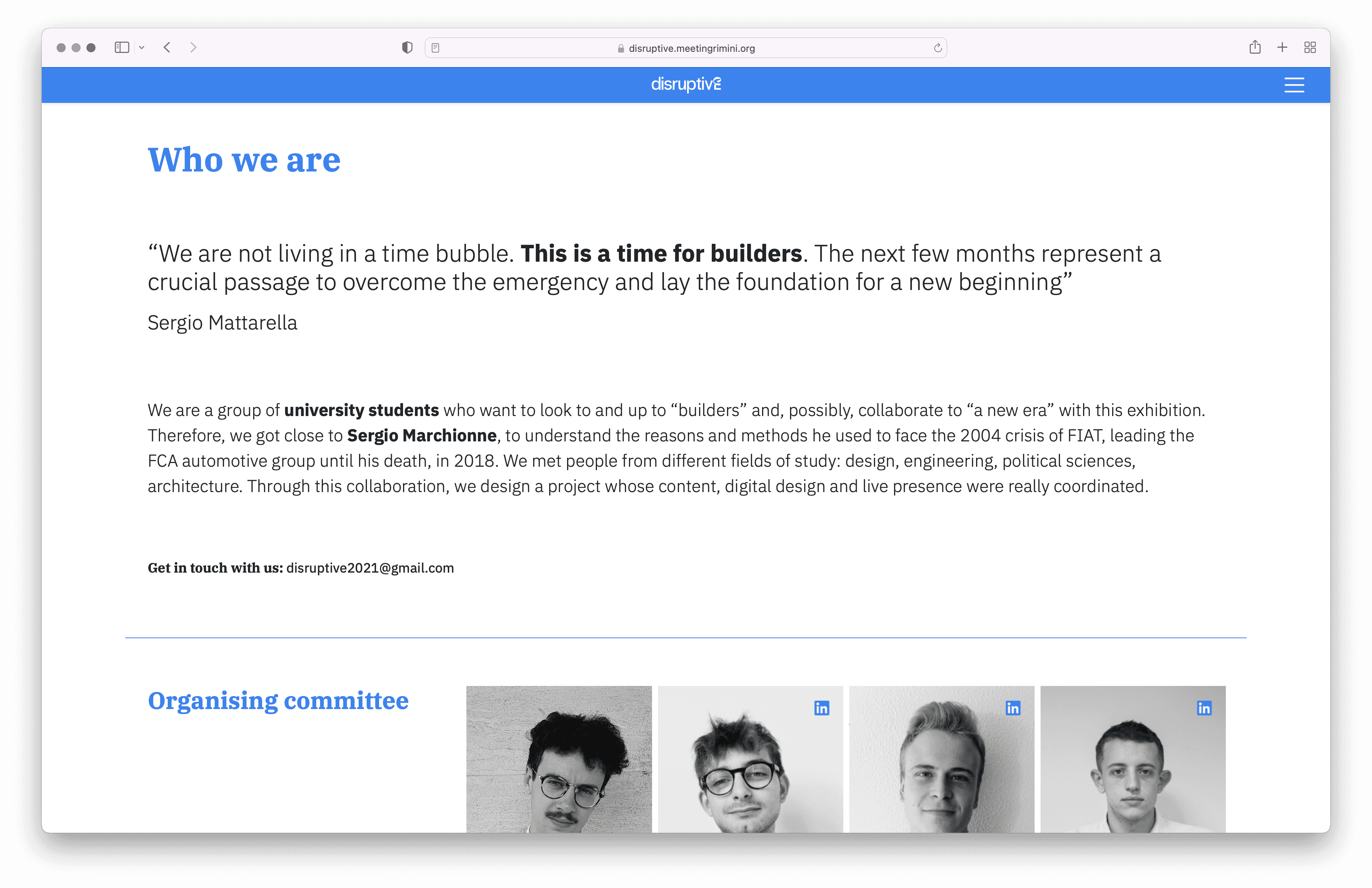 Disruptive: the challenge of rebuilding is a digital exhibit, conceived for digital media. A design-centered exhibition born out of the passion and hard work of young Italian university students.