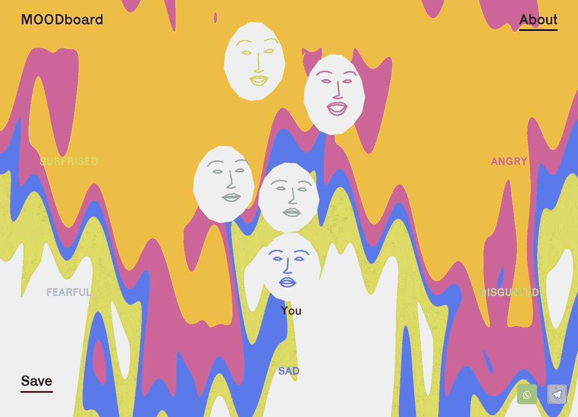 MOODboard is a digital experience which aims to be used by users in order to reconnect with their peers and other anonymous surfers through their emotions.